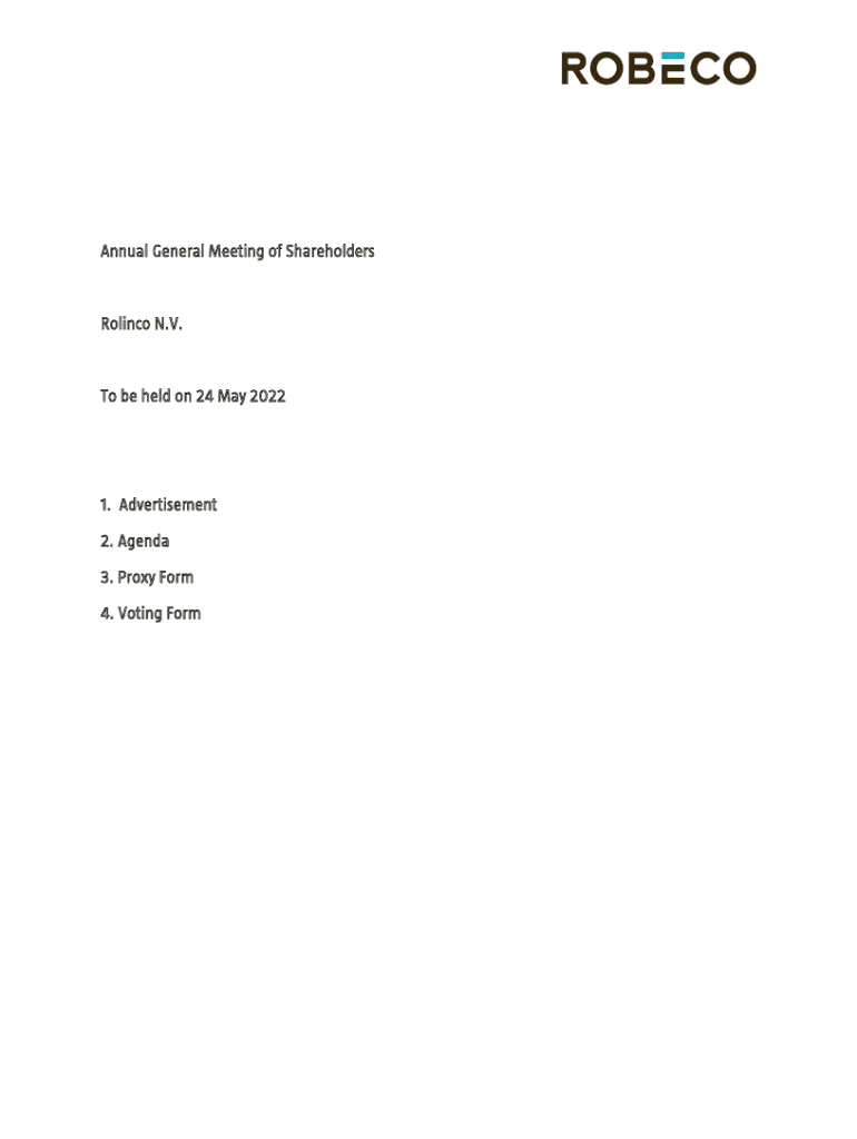 Annual General Meeting of ShareholdersRolinco N.V. To be held on 24 May 20221. Advertisement