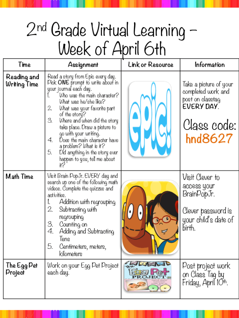 Get the free Grade 2 Week of April 6-10 Time Task Suggested Activities ...