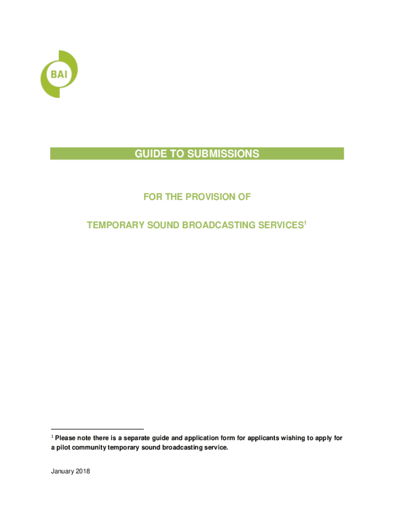 GUIDE TO SUBMISSIONS THE PROVISION OF TEMPORARY SOUND BROADCASTING SERVICES11Please note there is a separate guide and application form for applicants wishing to apply for a pilot community temporary