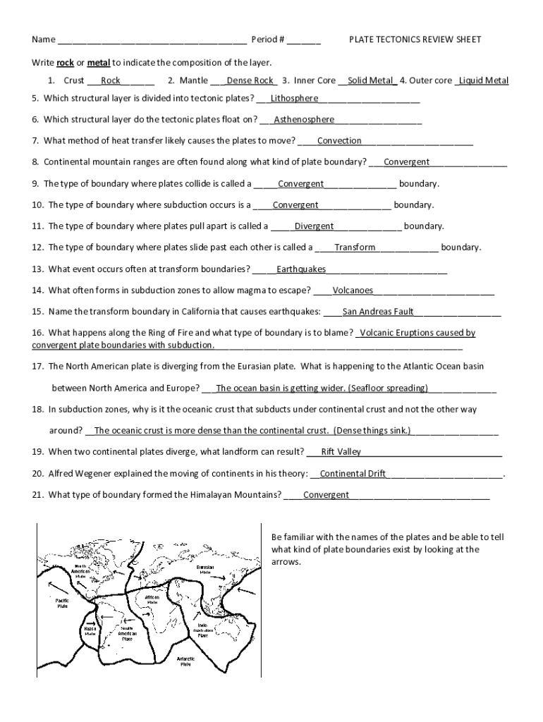 Get the free Name Period # PLATE TECTONICS REVIEW SHEET Write ...