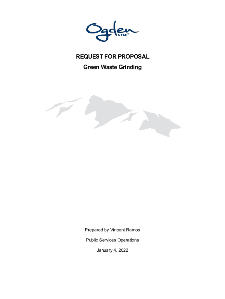 REQUEST FOR PROPOSAL Green Waste GrindingPrepared by Vincent Ramos Public Services Operations January 4, 2022OGDEN CITY CORPORATION REQUEST FOR PROPOSAL Green Waste Grinding Ogden City is requesting