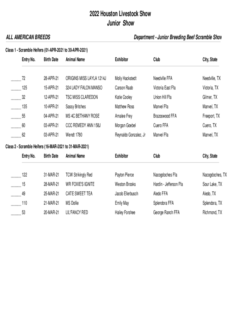 ALL AMERICAN BREEDSDepartment Junior Breeding Beef Scramble Showcase 1 Scramble Heifers (01APR2021 to 30APR2021)