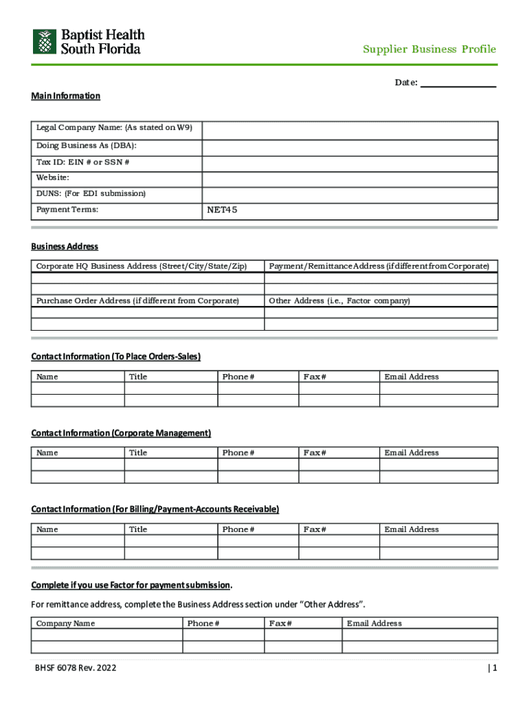 Supplier business profile is a document or form that provides detailed information about a supplier's company, products, services, and financial stability.
