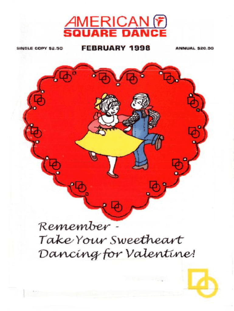 AMERICAN, r SQUARE DANCE SINGLE COPY 52.50FEBRUARY 1998ANNUAL $20.00Re/NEM/Labor Take/Later Sweetheart/ruck.NW for Vale/ntuneAmommaRsrs TOP RI RECORD SERVICE THE \” ORIGINAL\” SUBSCRIPTION TAPE