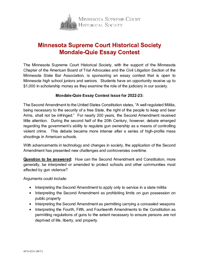 Minnesota Supreme Court Historical Society MondaleQuie Essay Contest The Minnesota Supreme Court Historical Society, with the support of the Minnesota Chapter of the American Board of Trial Advocates