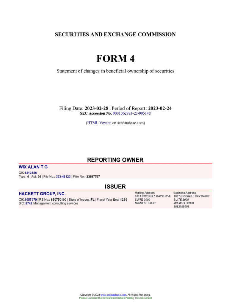 Get the free WIX ALAN T G Form 4 Filed 2023-02-28. Accession Number