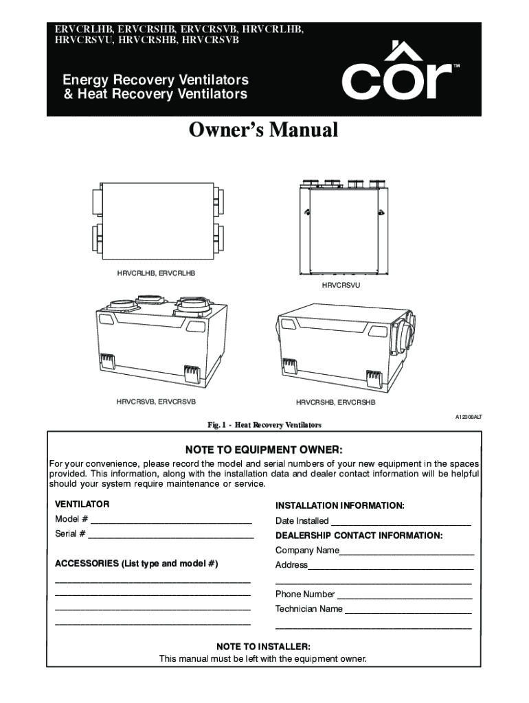 & Heat Recovery VentilatorsOwners ManualHRVCRLHB, ERVCRLHB