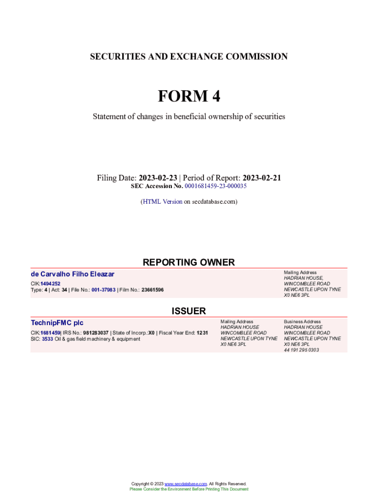 Get the free de Carvalho Filho Eleazar Form 4 Filed 2023-02-23. Accession Number