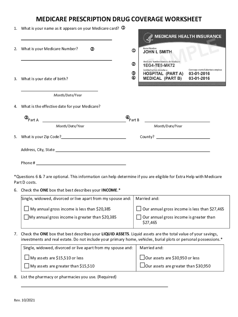 MEDICARE PRESCRIPTION DRUG COVERAGE WORKSHEET 1. What is your name as it appears on your Medicare card? 2. What is your Medicare Number? 3. What is your date of birth? Month/Date/Year4. What is the