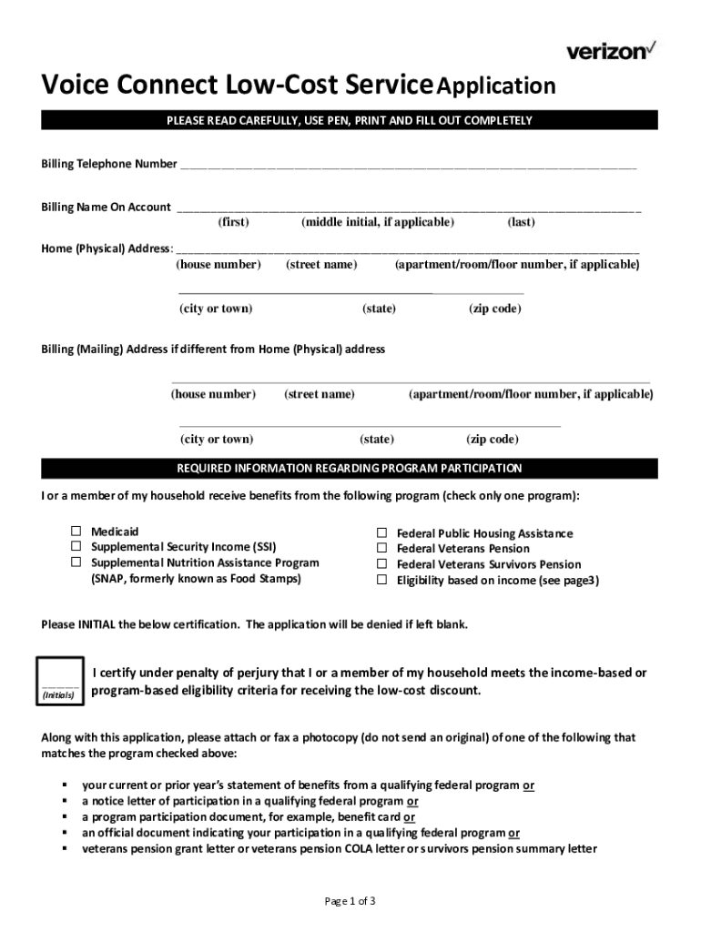 How to fill out verizon voice connect low-cost?