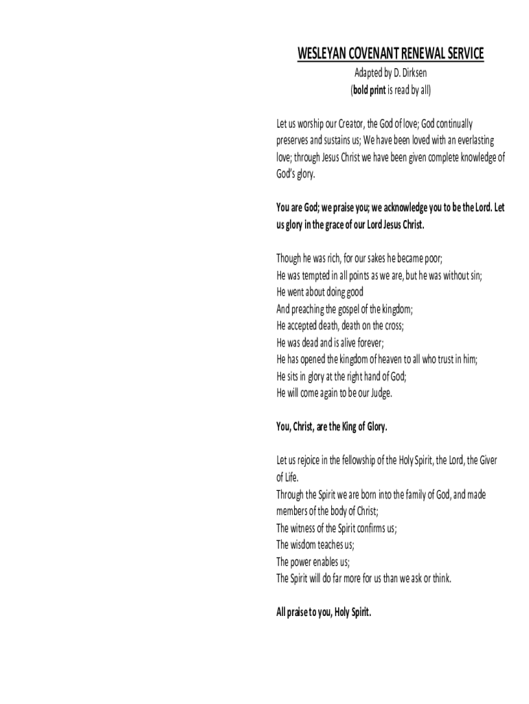 Get the free The Covenant Renewal Service For The New Year