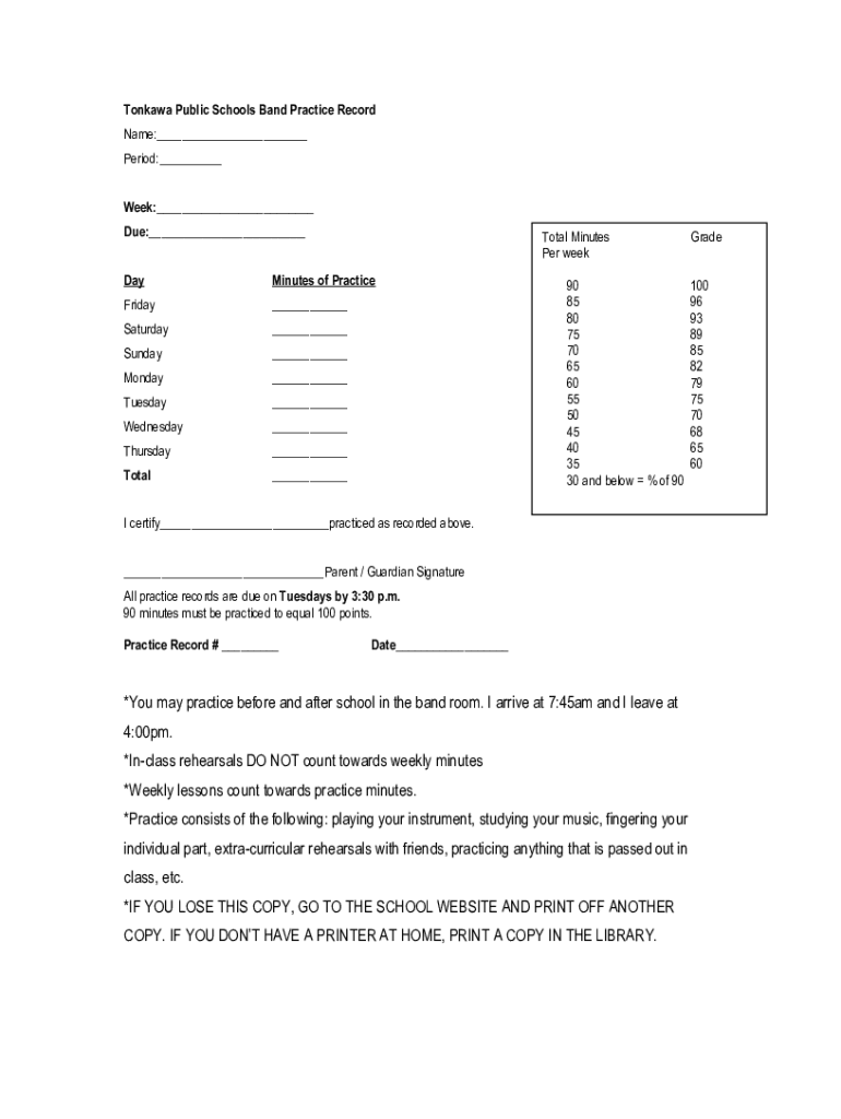 Tonalá Public Schools Band Practice Record