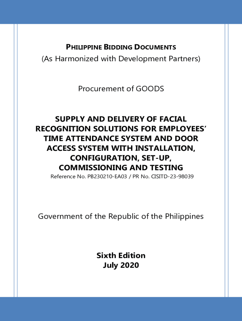 PHILIPPINE BIDDING DOCUMENTS (As Harmonized with Development Partners)Procurement of GOODSSUPPLY AND DELIVERY OF FACIAL RECOGNITION SOLUTIONS FOR EMPLOYEES TIME ATTENDANCE SYSTEM AND DOOR ACCESS SYSTEM