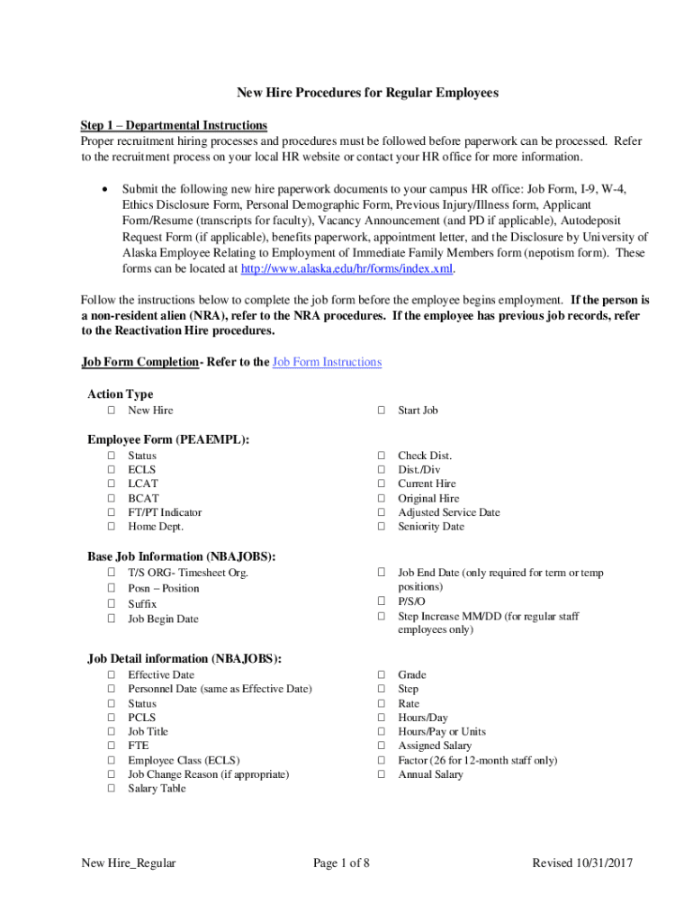 New Hire Procedures for Regular Employees Step 1 Departmental Instructions Proper recruitment hiring processes and procedures must be followed before paperwork can be processed. Refer to the recruitment