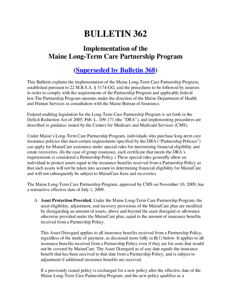 Get the free Bulletin 362. Implementation of the Maine Long-Term Care Partnership Program