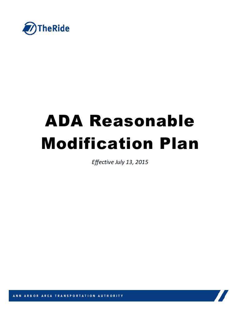 ADA Reasonable Modification Plan EffectiveJuly13,2015A N A R B O R A RE Page A T R1 A N S P O R T A T I O N A U T H O R I TY Contents Introduction..................................................................................................................................................3