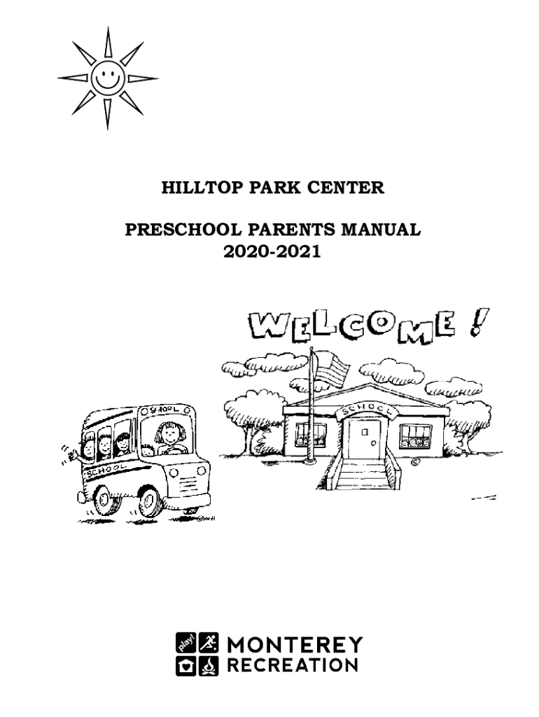 HILLTOP PARK CENTER PRESCHOOL PARENTS MANUAL 20202021Dear Parents, Welcome to the City of Monterey Recreation Preschool Program! We are pleased to have your child enrolled in our program, and thank