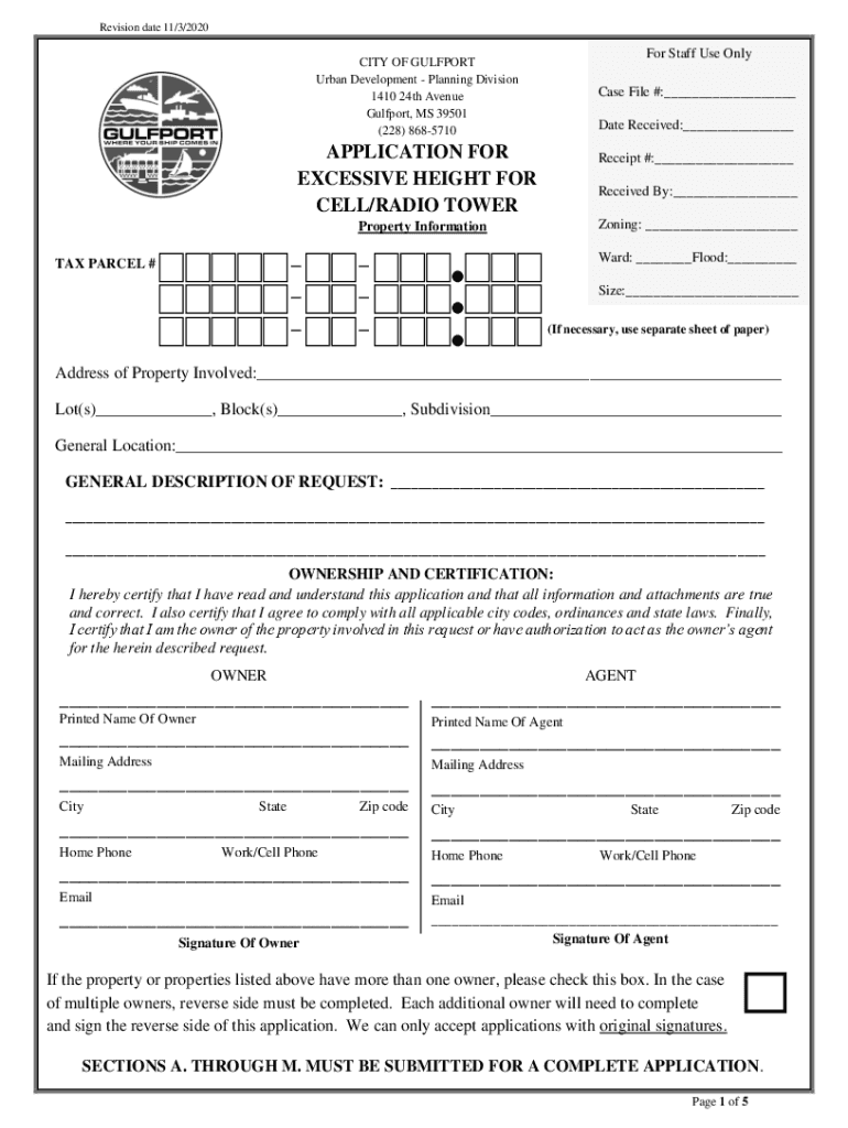 Revision date 11/3/2020For Staff Use Velocity OF GULFPORT Urban Development Planning Division 1410 24th Avenue Gulfport, MS 39501 (228) 8685710Case File #:___ Date Received:___APPLICATION FOR EXCESSIVE
