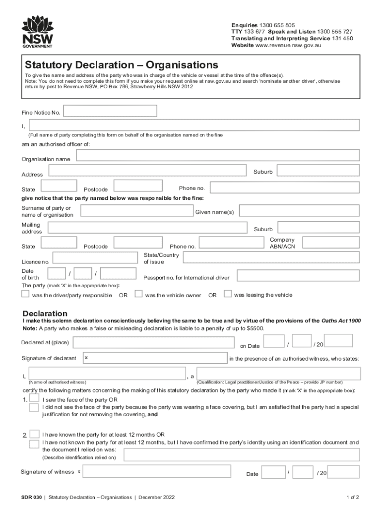 Get the free Statutory DeclarationOrganisationsNSW Revenue