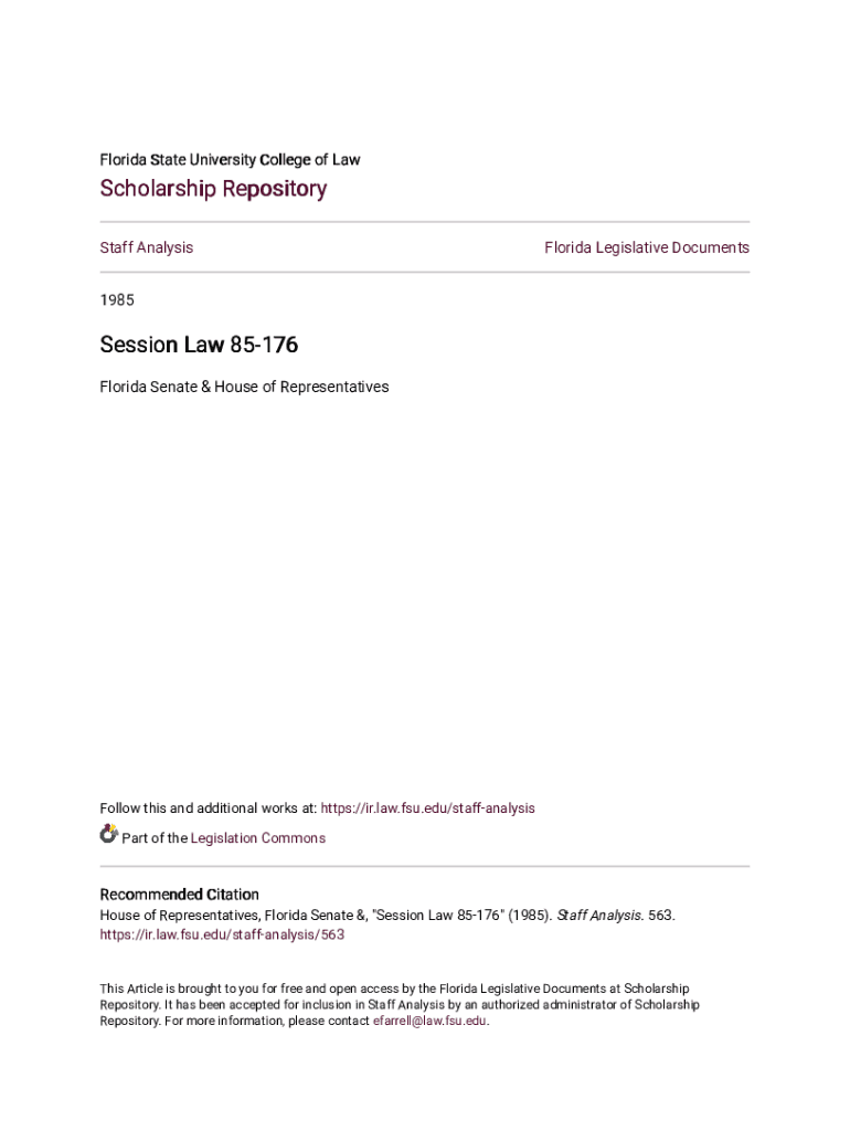 Florida State University College of Scholarship Repository Staff Analysis Florida Legislative Documents1985Session Law 85176 Florida Senate & House of RepresentativesFollow this and additional works