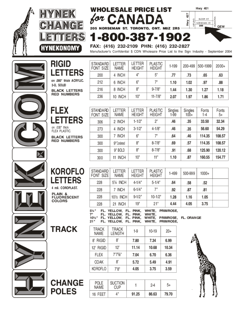 Kipling 427forBLOOR ST. NORSEMAN ST.205205 NORSEMAN ST. TORONTO, ONT. M8Z 2R5ISLINGTONHwy 401WHOLESALE PRICE LISTQEW18003871902 HYNEKONOMYRIGID LETTERS FAX: (416) 2322109 PhD: (416) 2322827 Manufacturers