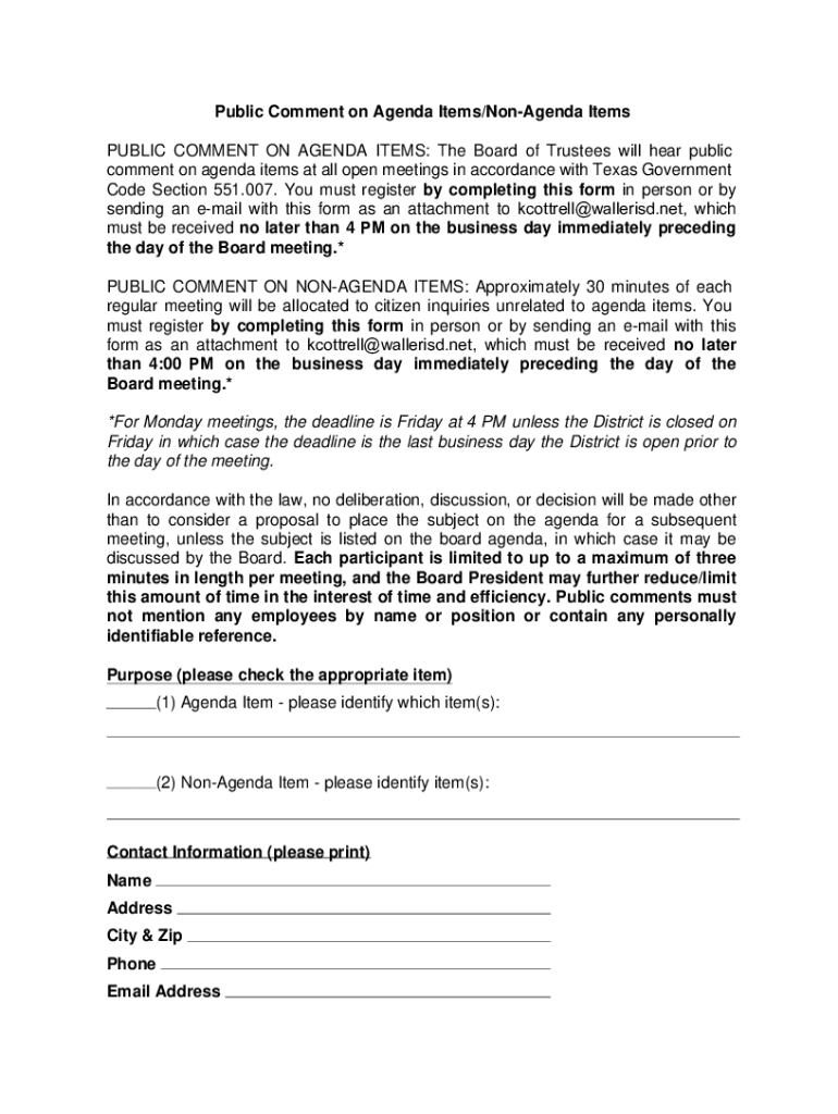 Get the free Forms for Public Comment on Agenda/Non-Agenda Items