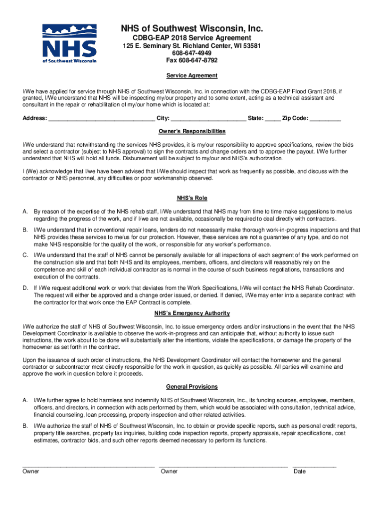 NHS of Southwest Wisconsin, Inc. CHEAP 2018 Service Agreement 125 E. Seminary St. Richland Center, WI 53581 6086474949 Fax 6086478792 Service Agreement I/We have applied for service through NHS of