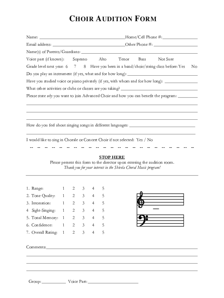 Individuals auditioning for a chorus line role are required to file a chorus line audition sheet.