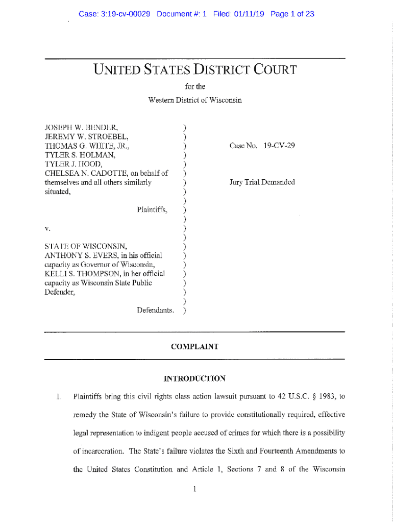 Case: 3:19cv00029Document #: 1Filed: 01/11/19Page1 of 23UNITED STATES DISTRICT COURT for the Western District of WisconsinJOSEPH W. BENDER, JEREMY W. STROBE, THOMAS G. WHITE, JR., TYLER S. HOLMAN,