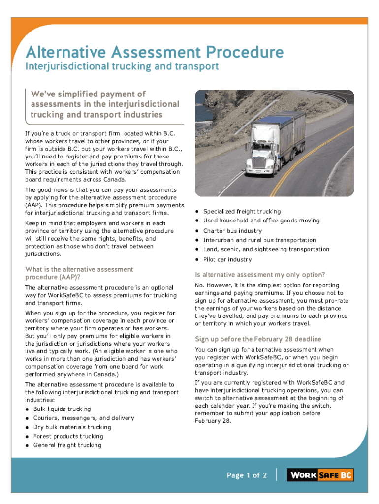 Alternative Assessment Procedure Interjurisdictional trucking and transport We've simplified payment of assessments in the interjurisdictional trucking and transport industries If you're a truck or
