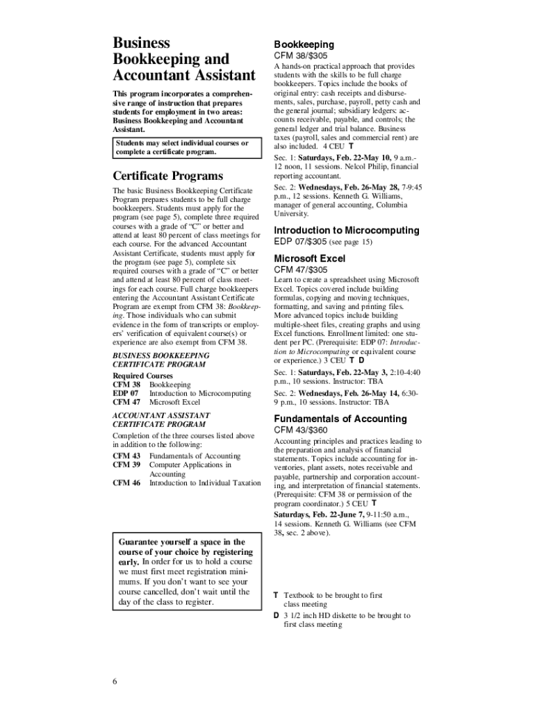 Business Bookkeeping and Accountant Assistant This program incorporates a comprehensive range of instruction that prepares students for employment in two areas: Business Bookkeeping and Accountant