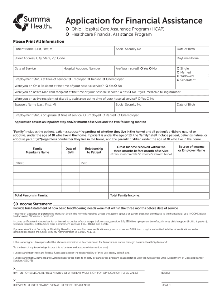 Get the free Application for Financial Assistance - Summa Health