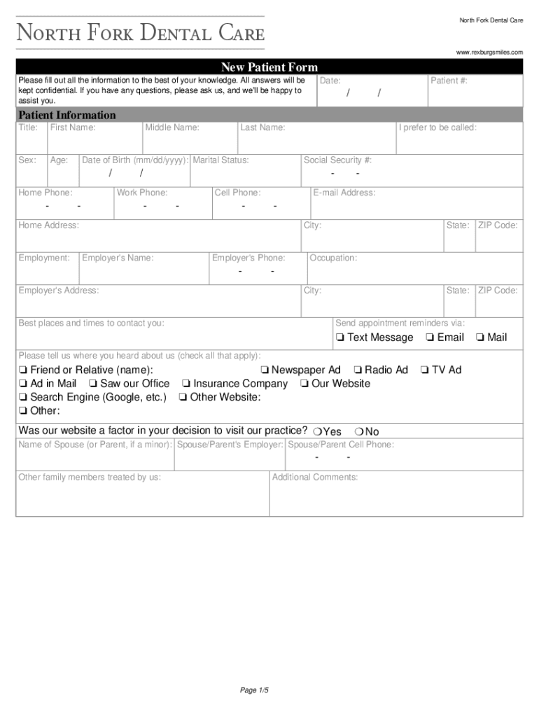 North Fork Dental Care North Fork Dental Career.rexburgsmiles.come Patient Form Please fill out all the information to the best of your knowledge. All answers will be kept confidential. If you have