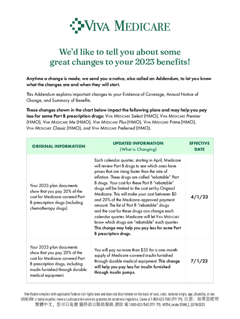 We'd like to tell you about some great changes to your 2023 benefits! Anytime a change is made, we send you a notice, also called an Addendum, to let you know what the changes are and when they will