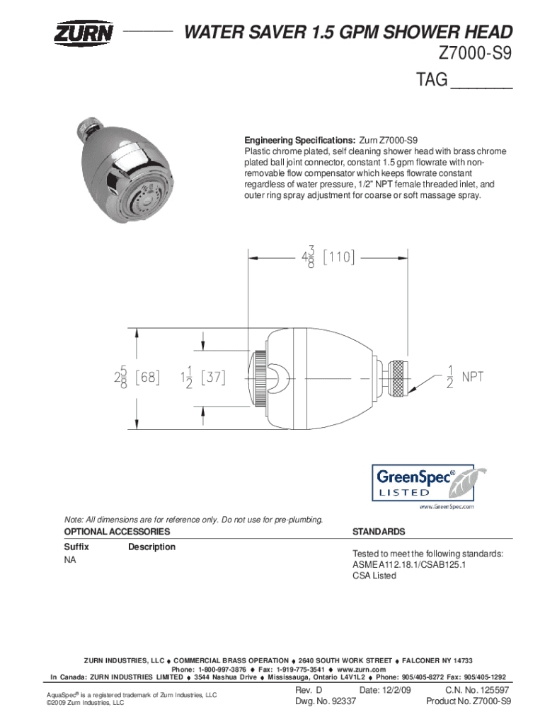 Fill out your zurn chrome fixed showerhead online with pdfFiller!