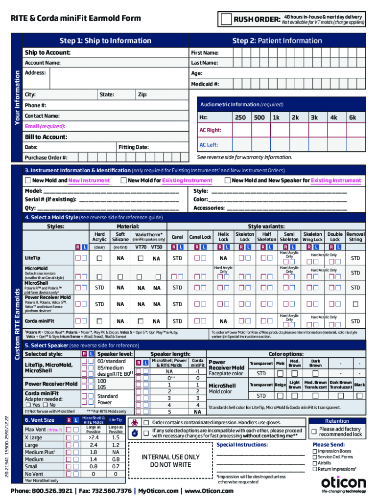 RITE & Cord misfit Ear mold Form48 hours in house & next day delivery RUSH ORDER: Not available for VT molds (charge applies)Your InformationStep 1: Ship to InformationStep 2: Patient InformationShip