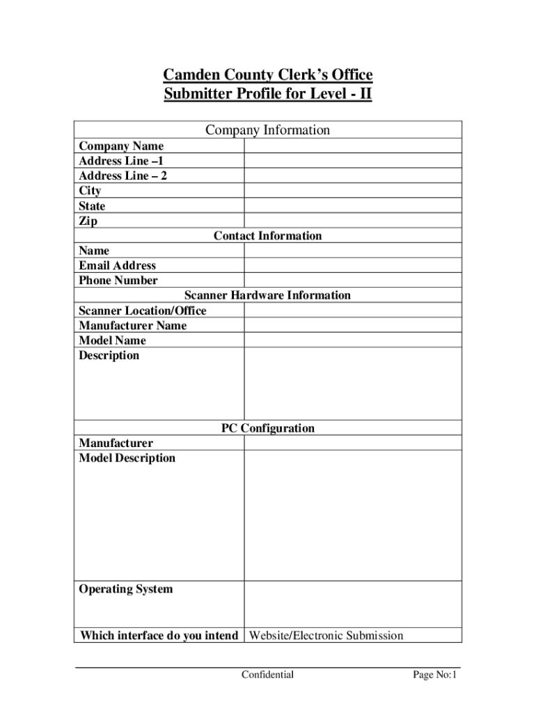 Camden County Clerks Office Submitter Profile for Level II Company Information Company Name Address Line 1 Address Line 2 City State Zip Contact Information Name Email Address Phone Number Scanner
