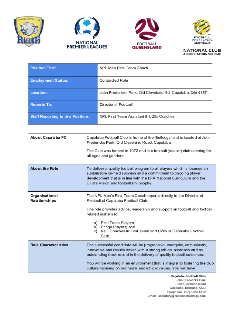 Get the free NPL Men First Team Coach Employment Status: Contracted Role ...