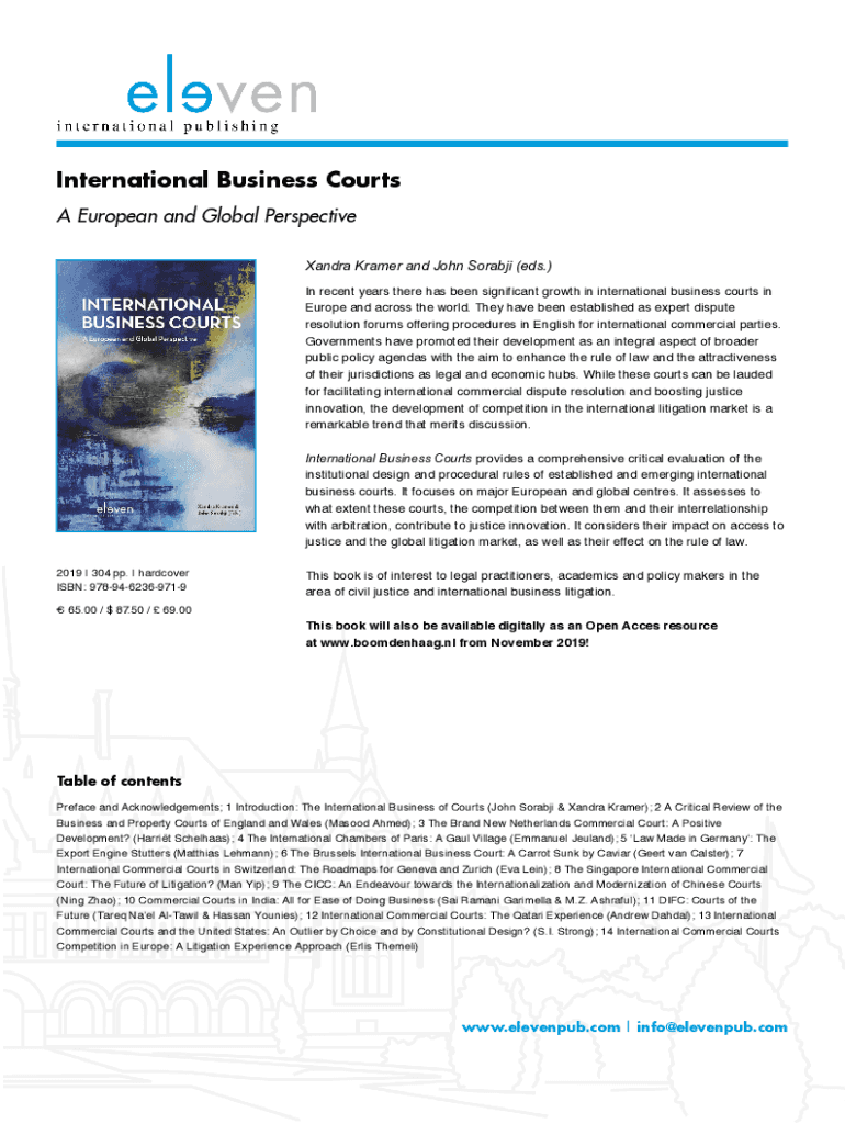 International Business Courts A European and Global Perspective Sandra Kramer and John Rabbi (eds.) In recent years there has been significant growth in international business courts in Europe and