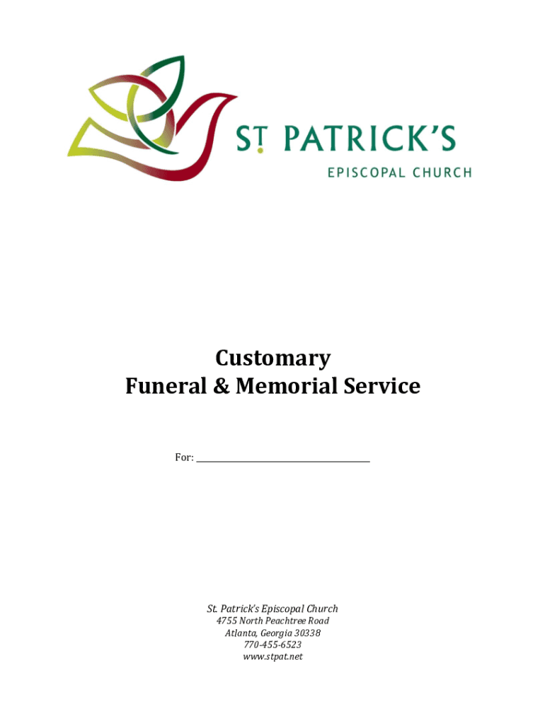 Customary Funeral & Memorial Service For: ___St. Patrick's Episcopal Church 4755 North Peach tree Road Atlanta, Georgia 30338 7704556523 www.stpat.netPage 2 of 12Funeral / Memorial Service Customary