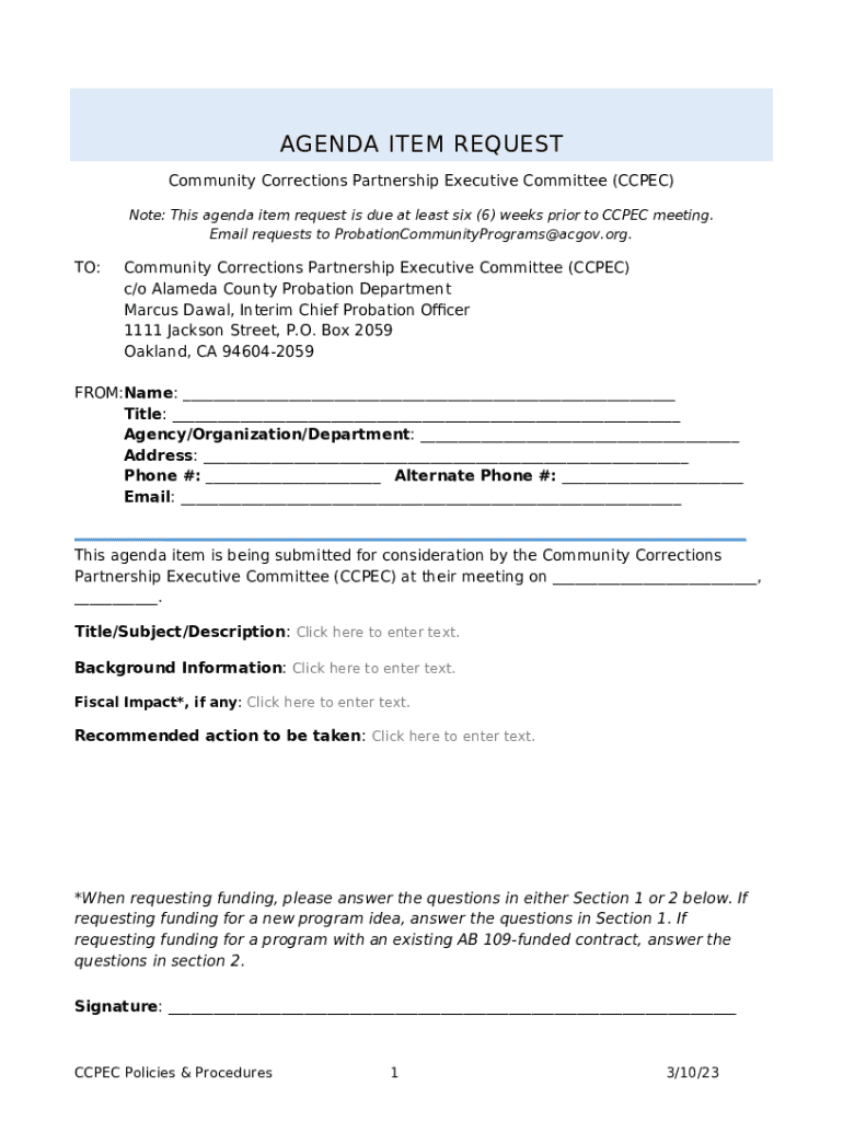 Agenda Item Request - Alameda County Probation Department word template: frequently asked questions