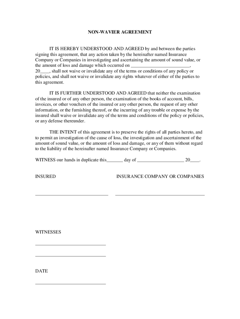 WAVIER AGREEMENT IT IS HEREBY UNDERSTOOD AND AGREED by and between the parties signing this agreement, that any action taken by the hereinafter named Insurance Company or Companies in investigating