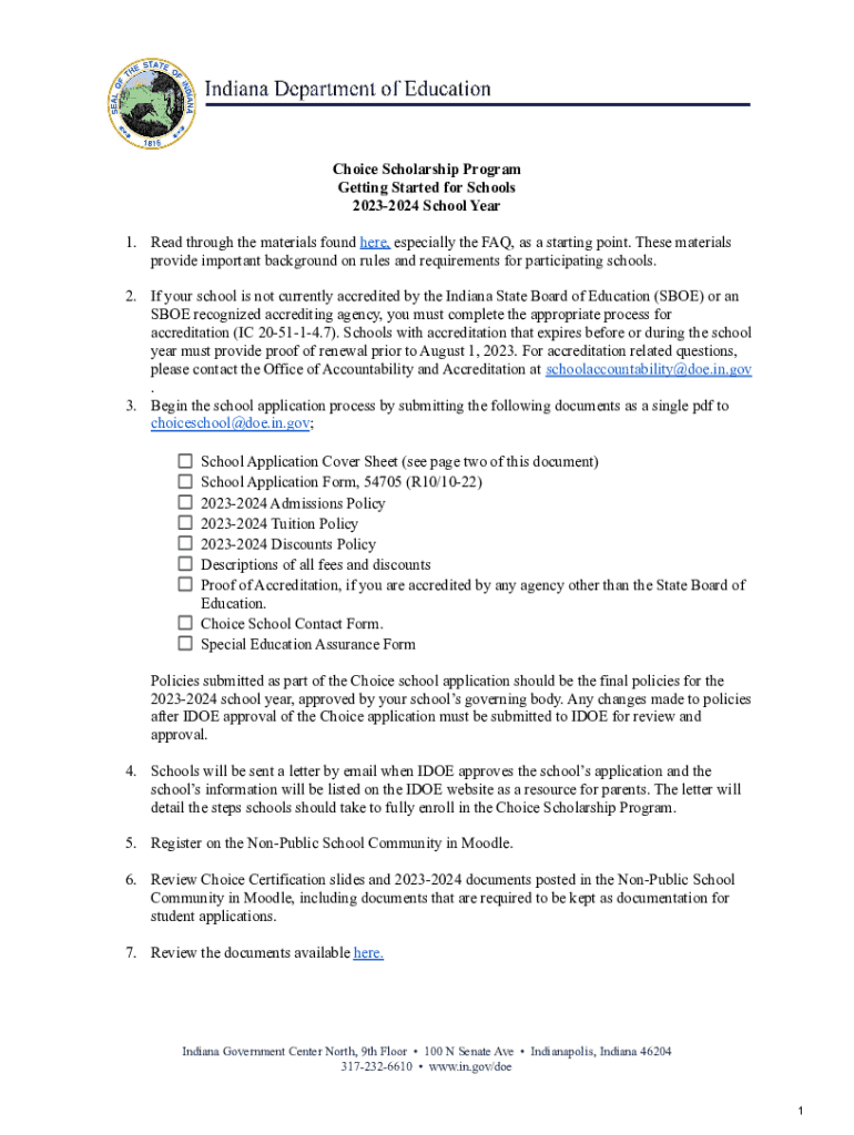 Get the free 4 Choice School Application Memo - IN.gov
