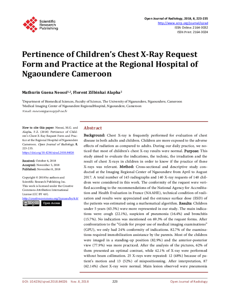 ISSN Print: 21643024Pertinence of Children's Chest Ray Request