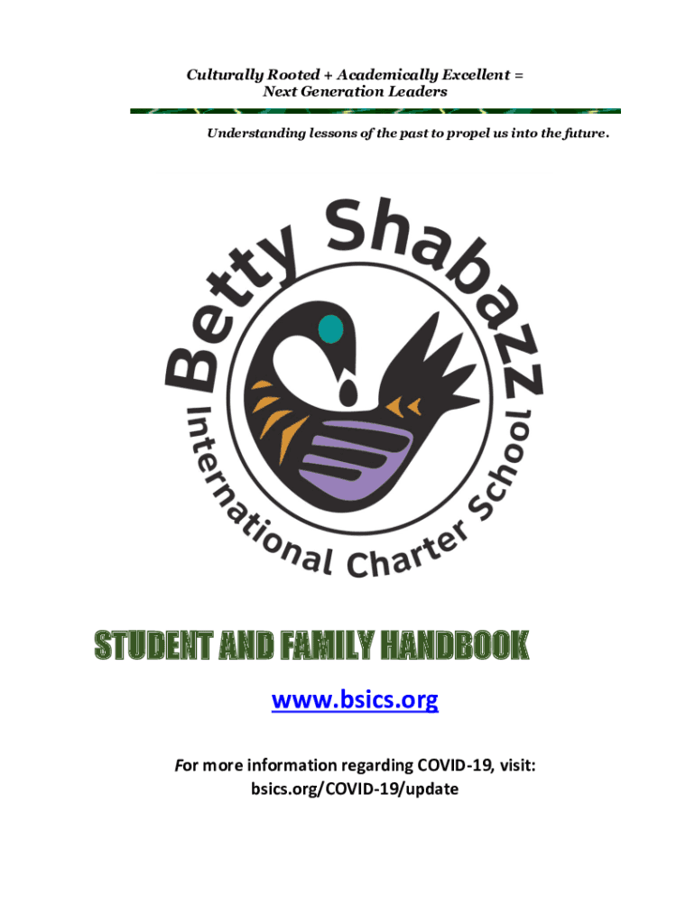 Get the free BSICS Family Handbook - Betty Shabazz Academy