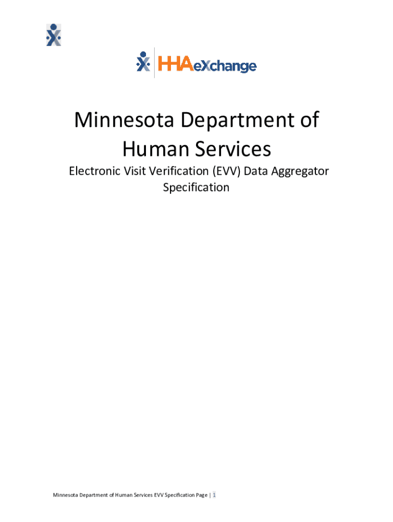 Minnesota Department of Human Services Electronic Visit Verification (EVE) Data Aggregator Specification Minnesota Department of Human Services EVE Specification Page | 1Legal The software described
