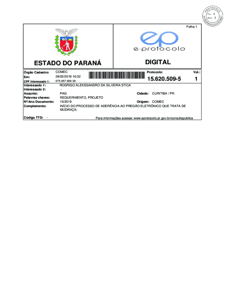 1 1Folha 1ESTADO DO PAGAN RGO Castro: Em:COME 26/02/2019 16:32CPF Interested 1:075.957.93939Interessado 1: Interested 2: Ass unto: Palavers Chaves: N/ANO Document: Complement:Cargo TTD:DIGITAL Protocol:15.620.5095RODRIGO