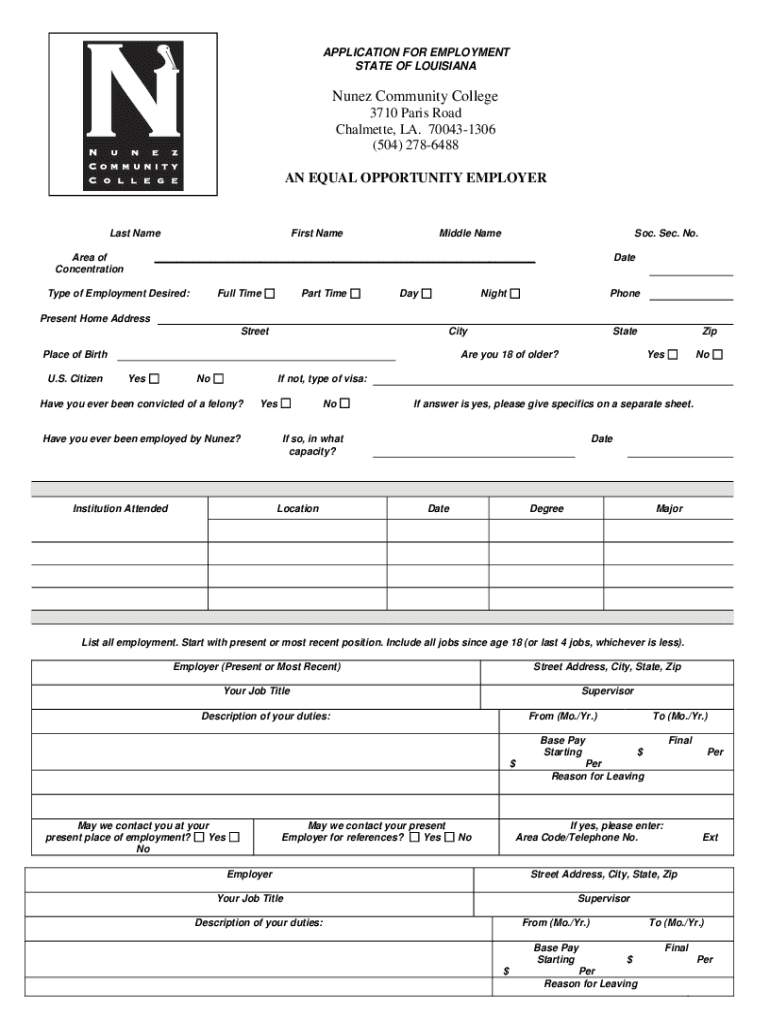 The Nunez employment application is a specific form used to apply for jobs or positions within the Nunez organization or related entities.