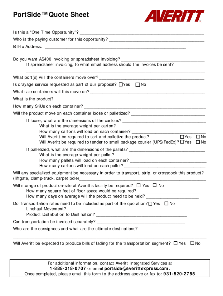 Outside Quote Sheet Is this a One Time Opportunity? ___ Who is the paying customer for this opportunity? ___ Bill to Address: ___ ___ Do you want AS400 invoicing or spreadsheet invoicing? ___ If spreadsheet