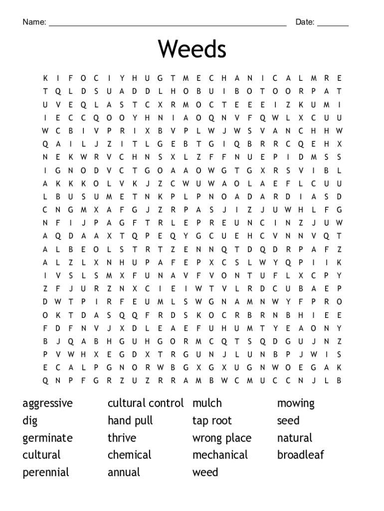 Get the free Puzzles and worksheets similar to Weeds Word Search - WordMint